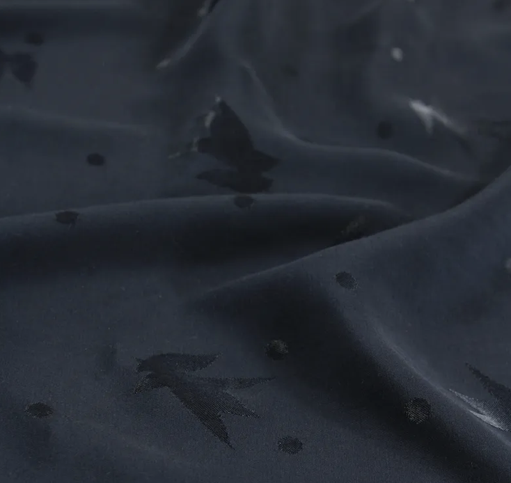 Magie Streli… Notre teinte Encre s’empare de la fluidité et de la douceur de notre jacquard de viscose Streli. Cette couleur bleue avec une touche de gris sera sublimée par l’aspect satiné du tissage et nous inspirera des cousettes très élégantes. Vous pourrez coudre dans ce tissu des chemises, tops, robes, jupes, combi, pantalons larges etc…